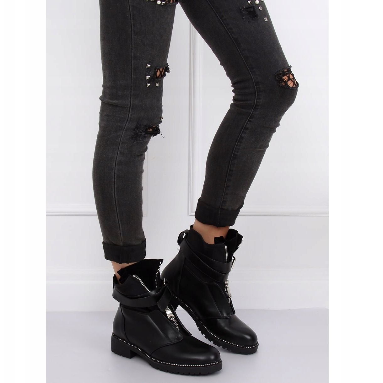 Discover a unique style with the NC821 Black military ankle boots! These expressive women's ankle boots are a great combination of fashionable design and everyday comfort. They feature a unique upper that subtly wraps around the ankle with straps, adding a characteristic military accent to the whole. The satin tongue gives them elegance, and the classic black color perfectly matches the spectacular details, such as rhinestones along the sole and a silver zipper on the front.