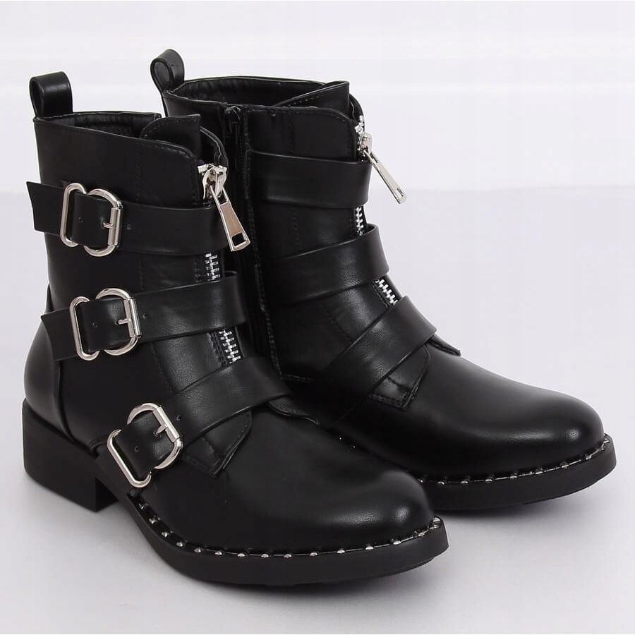 Black military boots NC851 Black are the perfect choice for women who want to add a bit of spice and originality to their style. These spectacular flat boots stand out not only with their modern design, but also functionality, making them an irreplaceable element of everyday styling.