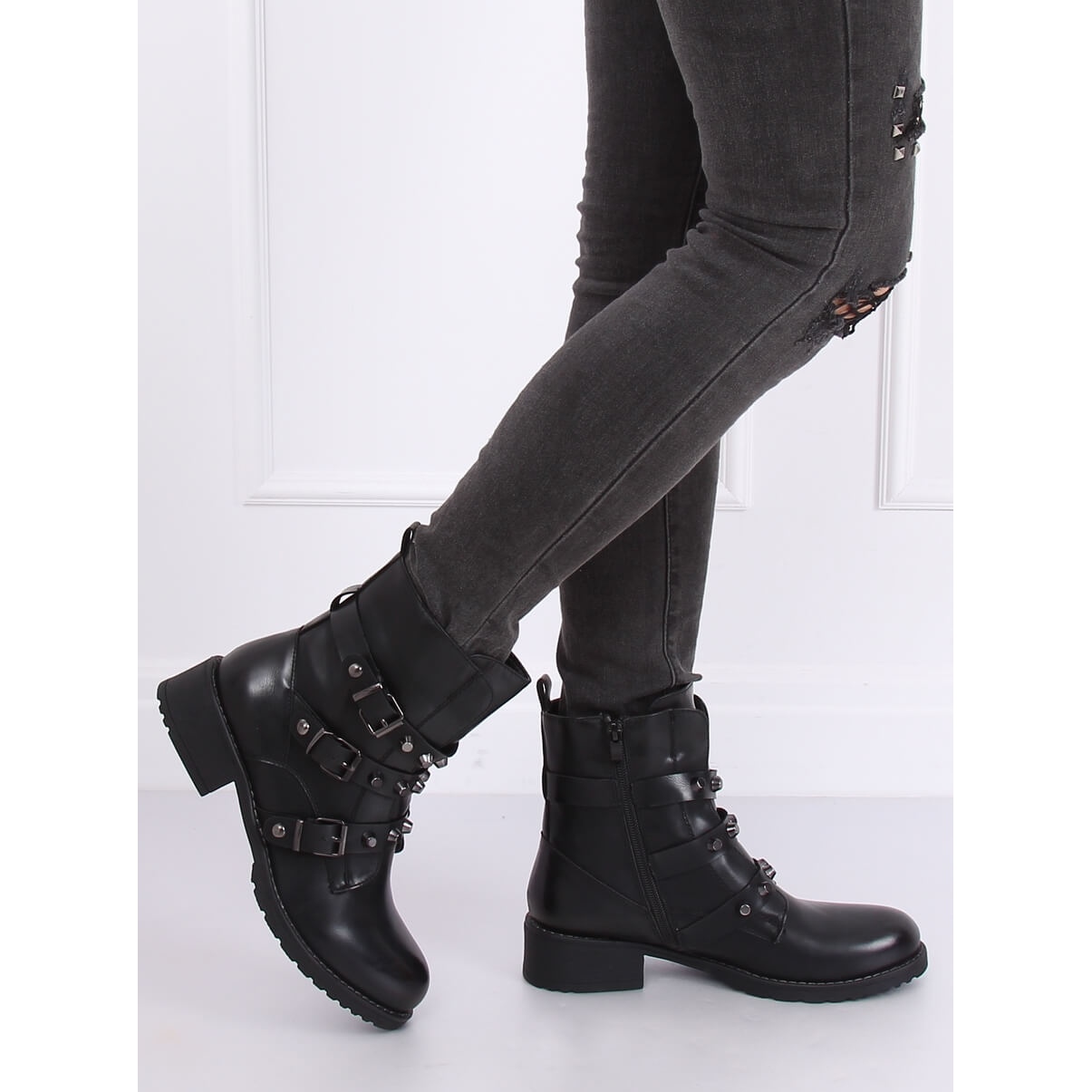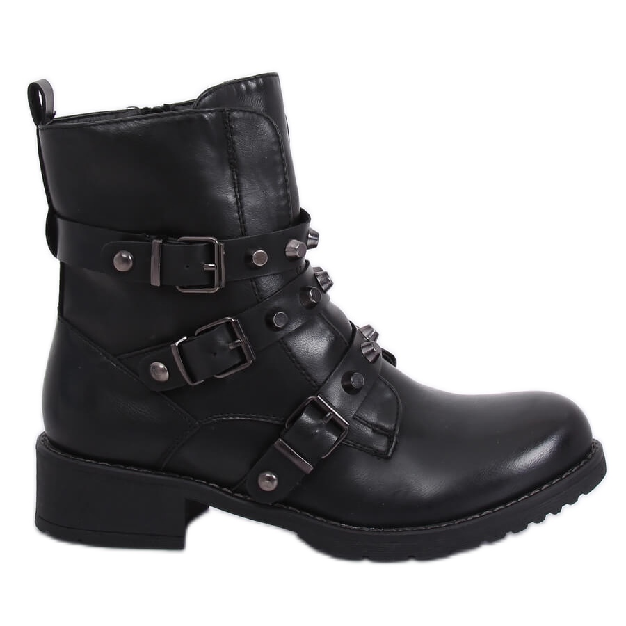 We present the Z195 Black military ankle boots, which are a perfect complement to any rock style. These women's ankle boots with a wide 4 cm heel combine comfort and modern design, making them an ideal choice for everyday wear.