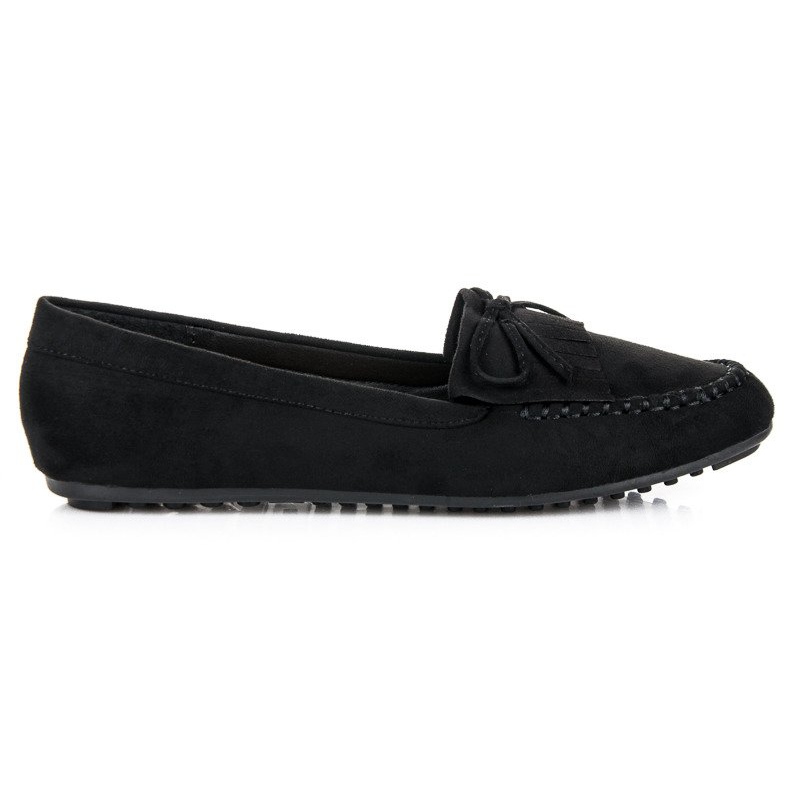 The black color remains universal and easily matched to various colors and textures, which makes black moccasins an inseparable element of many outfits for any occasion.