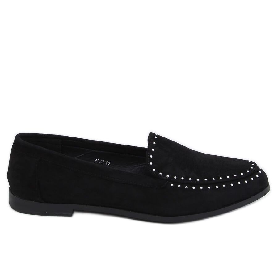 We invite you to discover the extraordinary 4322 Black studded loafers – a perfect combination of elegance and comfort. These suede loafers for women in black attract attention thanks to their unique front, which is decorated with delicate studs, adding character and modern style.