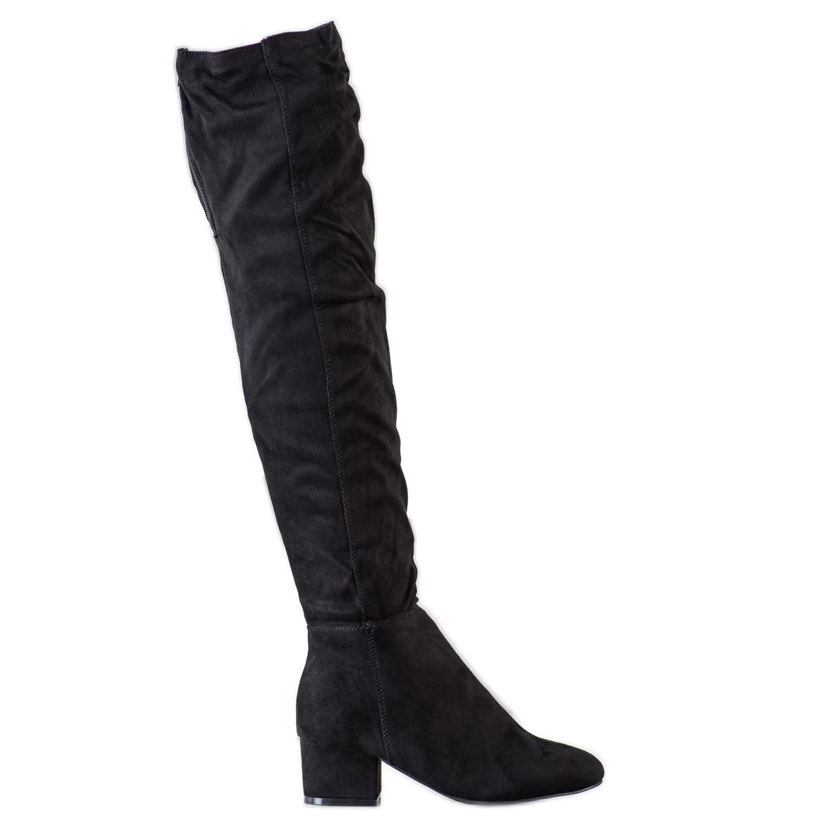 Made of high-quality ecological suede leather, the over-the-knee boots look incredibly stylish, and their deep black color will perfectly match any style - from casual to elegant for special occasions. The round toe and insulation ensure comfort, making them an ideal choice for colder days.