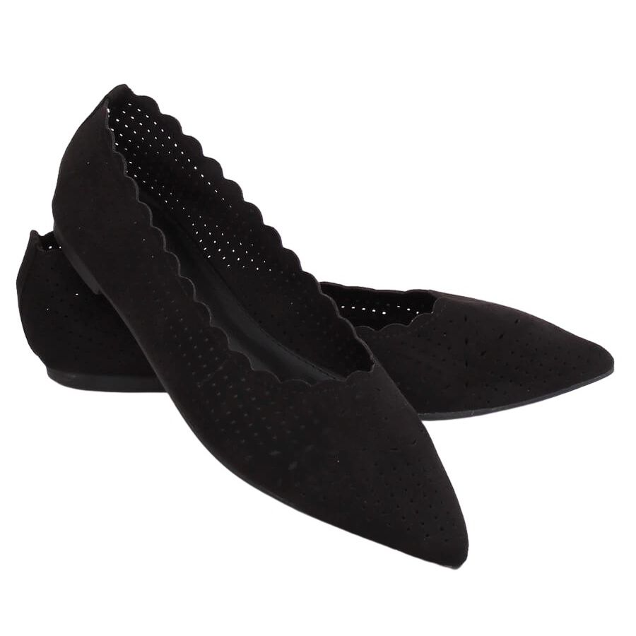Openwork ballerinas black NK18P Black are the perfect choice for women who value elegance and comfort every day. Made of ecological suede, these elegant ballerinas with a delicate pointed toe are a combination of classic and modern style. The openwork pattern adds lightness and makes them unique and original.