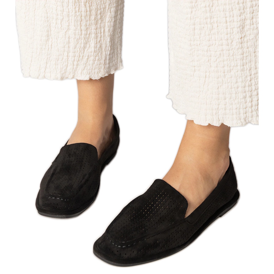 Moccasins made of ecological suede leather not only ensure durability, but also aesthetic appearance. The openwork pattern gives them lightness, which makes them a great choice for spring and summer days. These black, slip -up loafers blend in well with both everyday and more elegant stylizations, which makes them a versatile element of clothing.