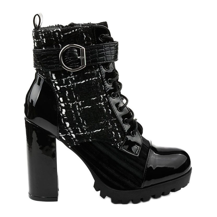 Black Feramo patchwork block heel boots are the perfect choice for women who value unique style. These unique shoes combine various textures, making them eye-catching and adding character to any styling.
