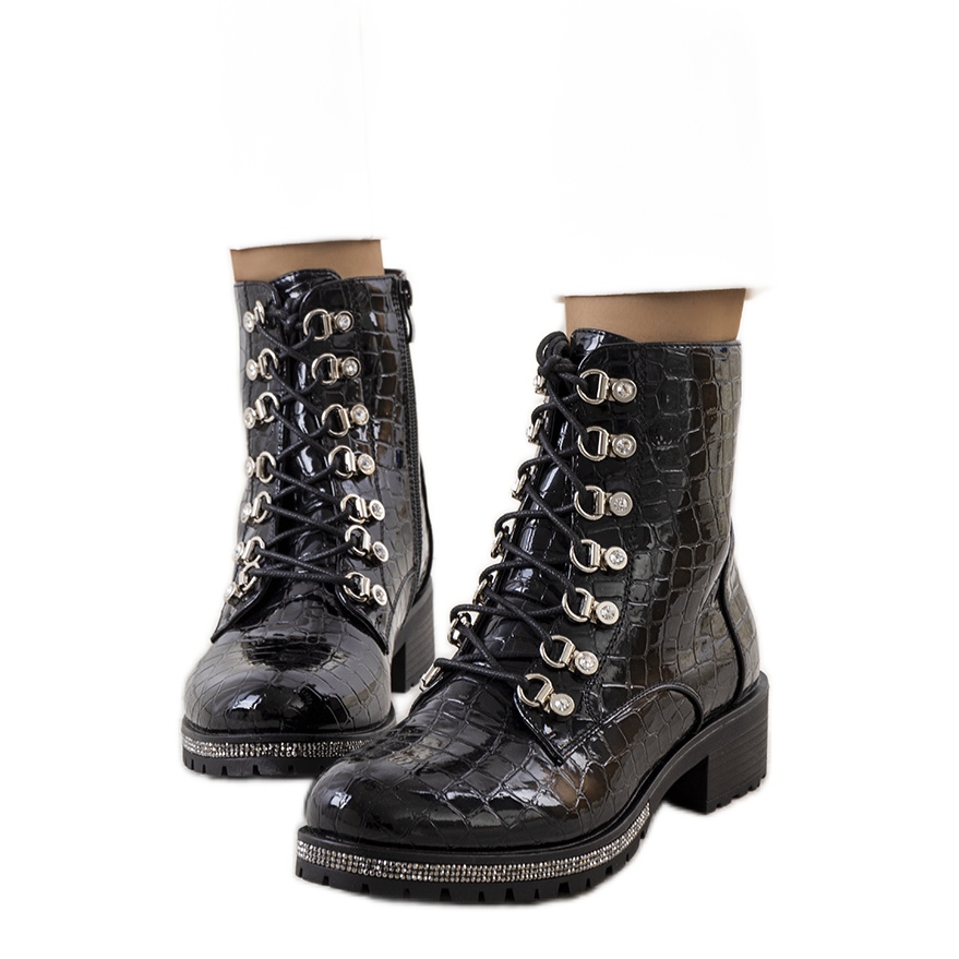 Feel special with every step you take in these patent leather ankle boots. Made of high-quality ecological leather, with embossing imitating a crocodile pattern, Alegre ankle boots will provide you with guilt-free comfort. They are the choice for women who value not only appearance, but also ethics.