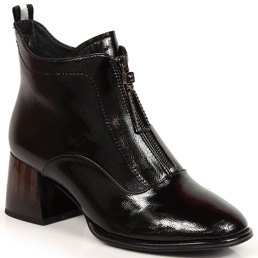 Women's black patent leather block boots from the S.Barski manufacturer are an ideal choice for women who value comfort and fashionable design. These elegant boots are distinguished by a shiny finish that gives them a unique character. Made of high-quality ecological leather, they guarantee not only an aesthetic appearance, but also durability and comfort.