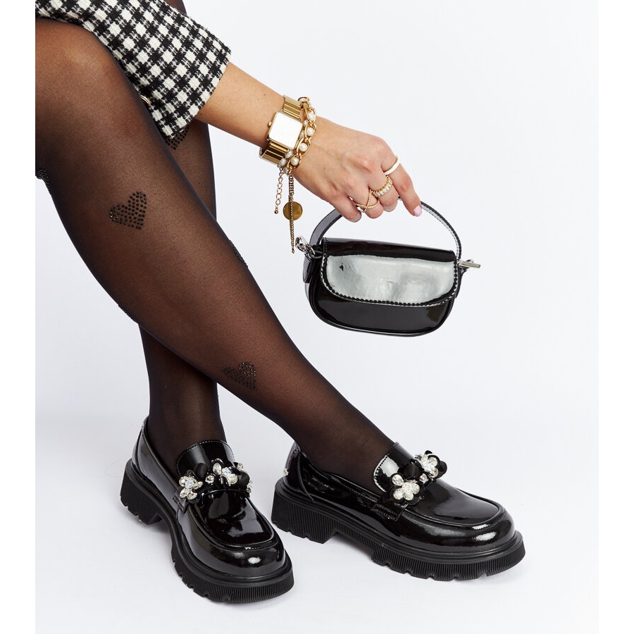 The black patent leather loafers GOE NN2N4200 are a unique model that combines elegance with modern style. Their round toe gives a subtle character, and the patent finish makes the shoes look phenomenal, reflecting light and attracting attention. An additional advantage is the decorative rhinestones, which add chic and make them ideal for various occasions.