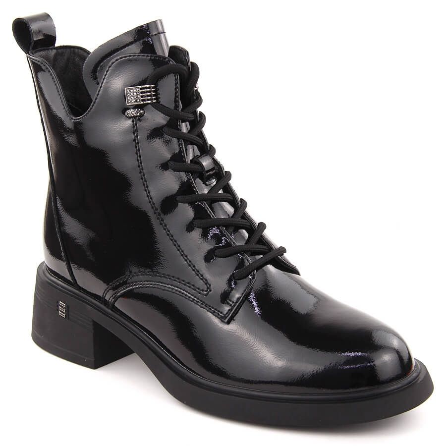 Details: Black patent leather women's ankle boots D&A S.Barski Premium Collection CR42-089