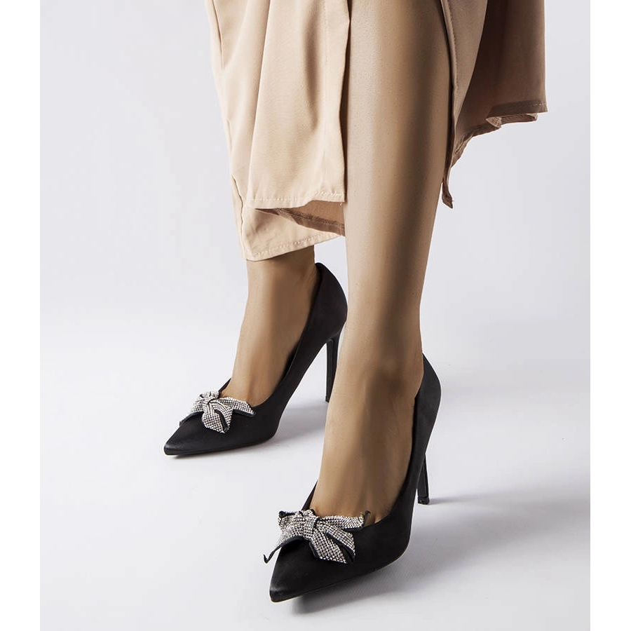 Black high heels with a satin finish with a bow - elegance and style for every occasion