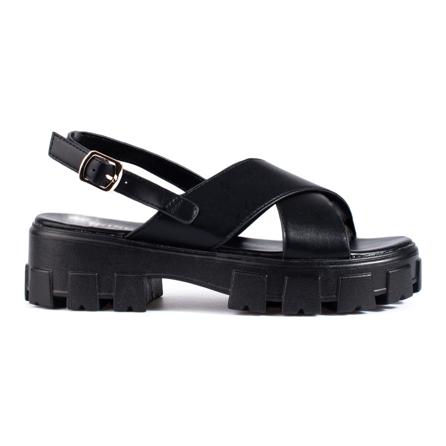 Black sandals on a thick platform from Vinceza are a great choice for spring and summer days. Their elegant, casual style makes them the perfect complement to everyday stylings. These sandals are characterized by an open heel, which ensures comfort and convenience of wearing, and the 5 cm platform adds lightness and makes them very stable.