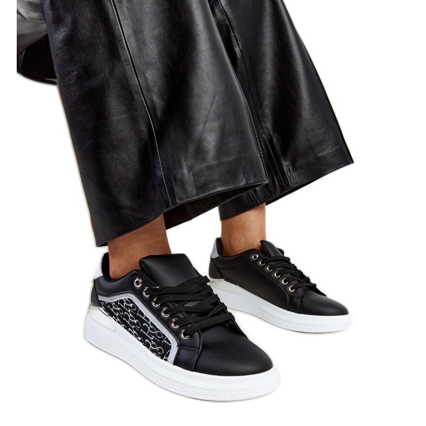 Black sneakers on a platform with Fekte to Must-Have glitter in every spring wardrobe! They are characterized by a low cut and a round nose, which makes them extremely comfortable and perfect for long days spent outdoors. Thanks to the laced fastener, you can easily match them to your foot, which ensures even greater wearing comfort.