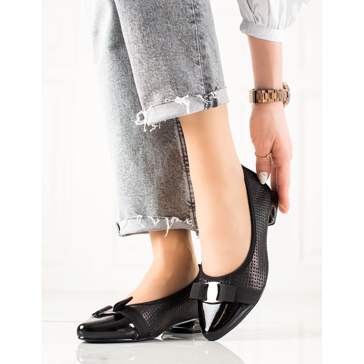 The pumps have a built-in, soft heel and a flat heel with a height of 2.5 cm, which ensures comfort of wearing all day long. Made of high-quality materials, including ecological leather and textiles, they combine aesthetics and durability. The interior of the shoes is lined with natural leather, which additionally increases the comfort of use.