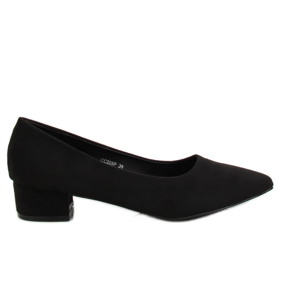 Low-heel pumps black CC205P Black are an ideal proposition for women who value elegance and comfort of wearing. Made of ecological suede, they look extremely stylish, and their classic, black color makes them suitable for many styles - both formal and more casual.