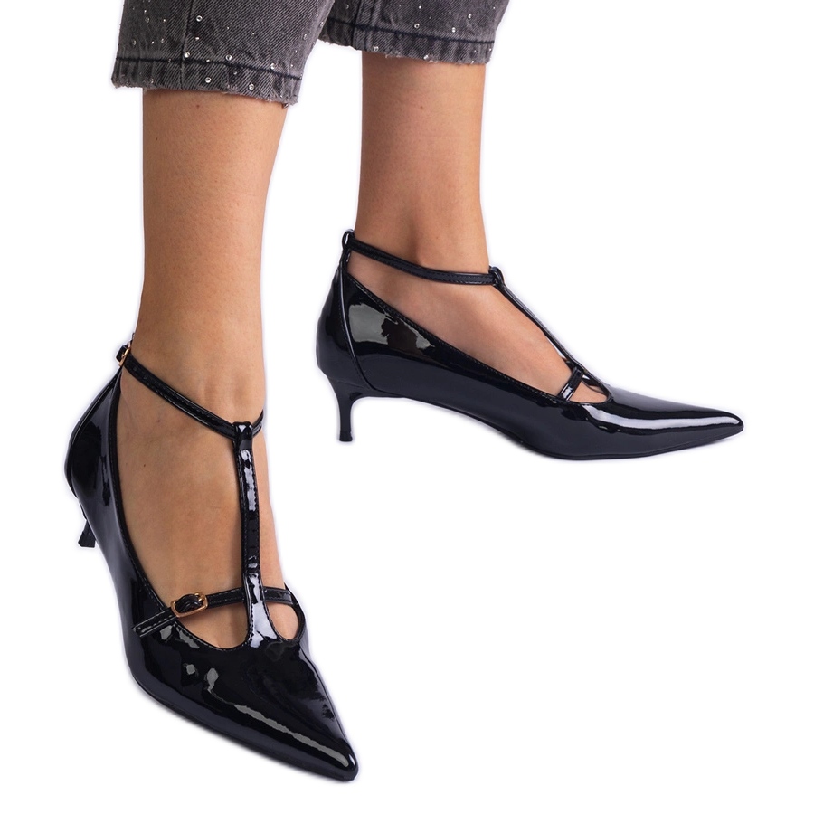 Inna marka Black pumps varnished on a low pile with buckles