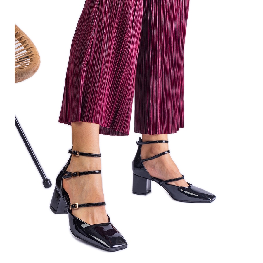 Inna marka Black pumps varnished on a post with buckles