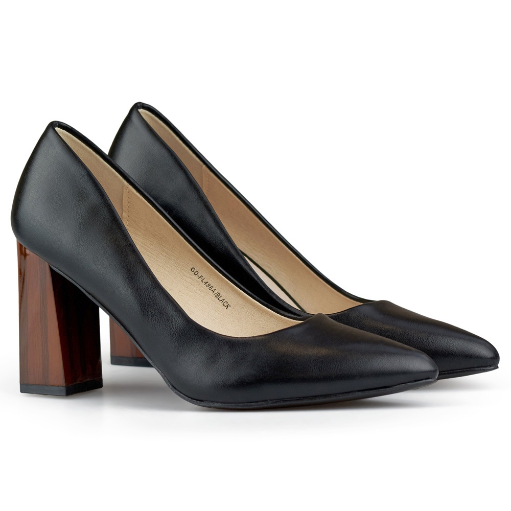 Made of ecological leather, pumps ensure durability and ease of maintenance. A natural leather insert guarantees comfort, even during a long day. Thanks to the insertion, footwear is extremely easy to put on, which will certainly be appreciated by every busy woman. The heel height of 8.5 cm in combination with a solid post means that pumps not only emphasize the figure, but also ensure stability and comfort.