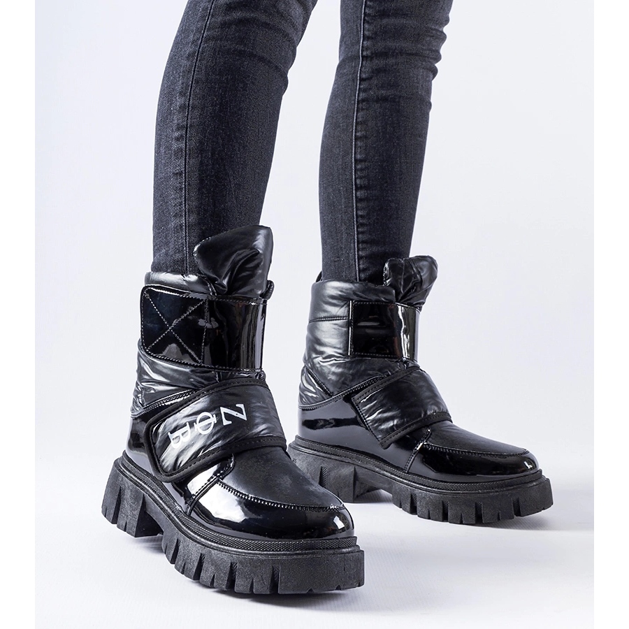 Stylish and functional women's snow boots, ideal for cooler days. Classic, black colors and varnished accents give them elegance, and insulation provides thermal comfort even at low temperatures. A flat, rubber sole guarantees adhesion and durability.