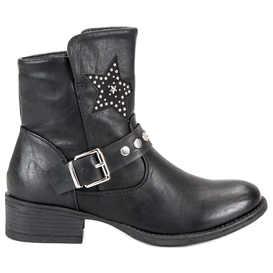 Discover your rock side with our unique black ankle boots, which will become an irreplaceable element of your wardrobe. The style of these shoes attracts attention - an elegant decorative buckle and a subtle star made of beads add a unique character. These ankle boots perfectly match rock stylings, but they also fit everyday, casual sets.