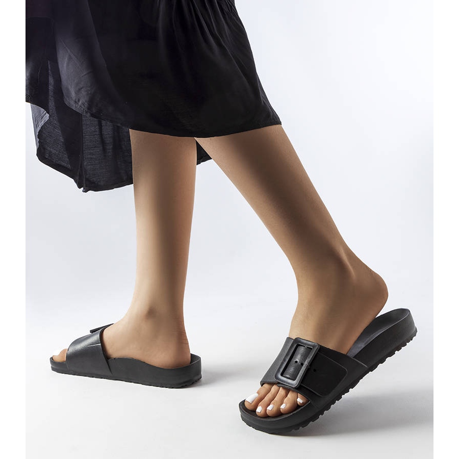 Details: Black rubber sliders with a buckle from Nelm