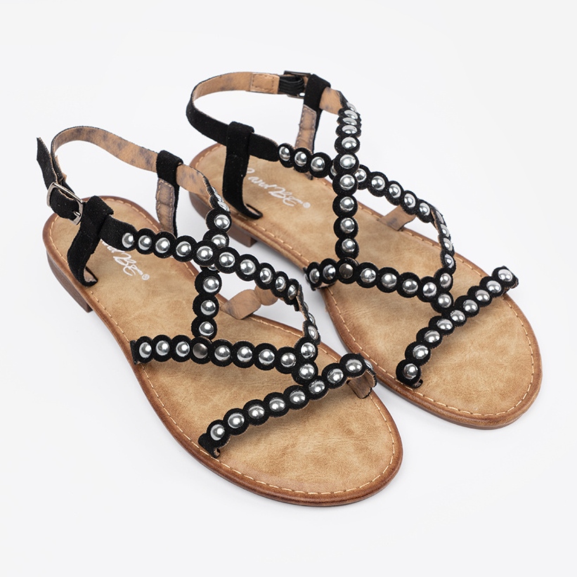Details: Black sandals decorated with studs