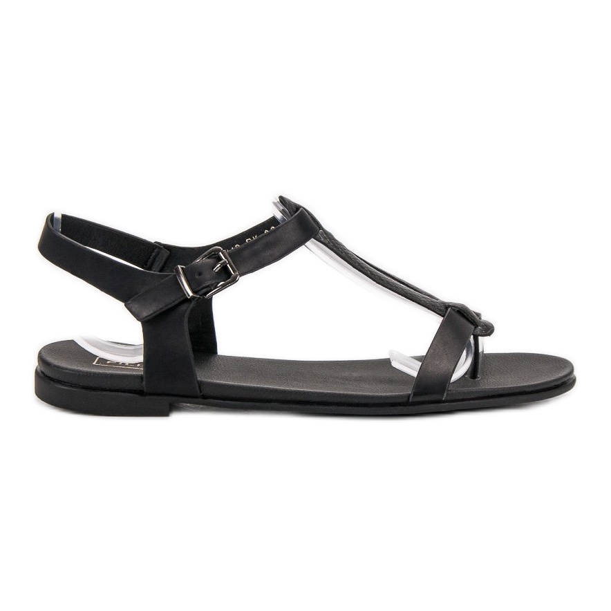 The black flip-flops have a flat heel with a height of 1.5 cm, which allows for comfortable wearing all day long. The buckle fastening ensures that the footwear fits perfectly to the foot, eliminating the risk of movement while walking. Thanks to the open heel and smooth sole, these sandals are airy and ideal for spring and summer days.