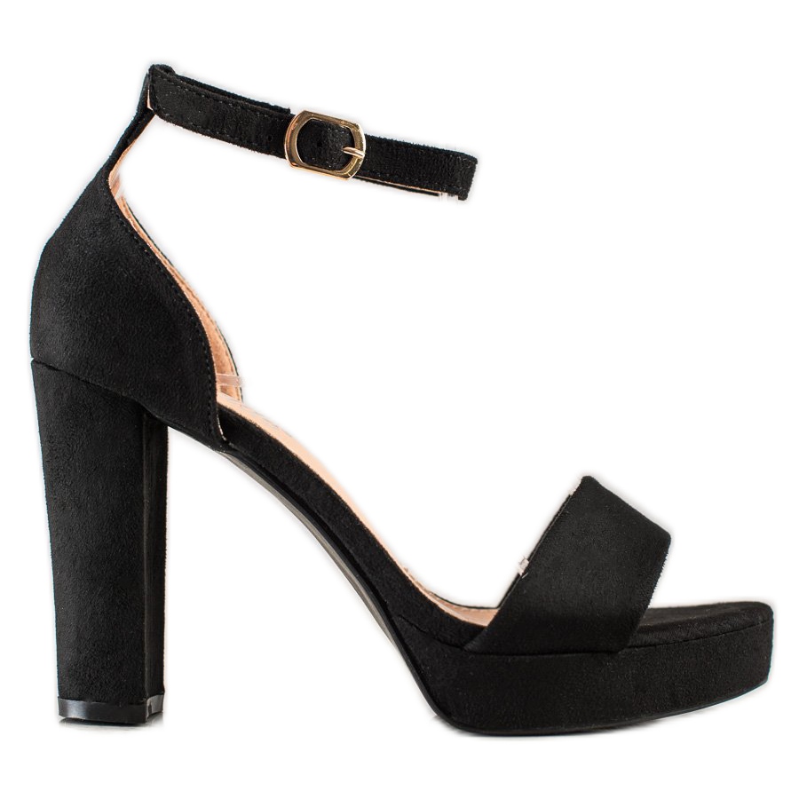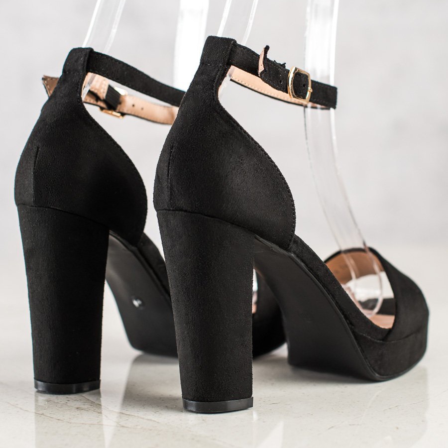 The sandals are characterized by a classic design with an open heel, which adds charm to them. The wide 10 cm high post provides stability and comfort of wearing, allowing you to enjoy every moment without worrying about aching feet. Made of imitation suede, the sandals look extremely stylish, and the inner material made of eco-leather takes care of comfort.