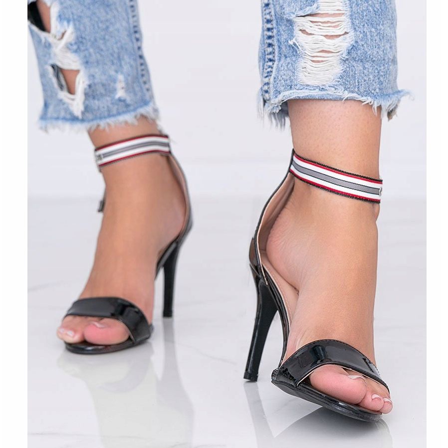 We present a unique model of Michela high-heel sandals that impress with their elegance and style. Made of patent eco-leather in a spectacular shine, these black sandals will perfectly emphasize any styling.