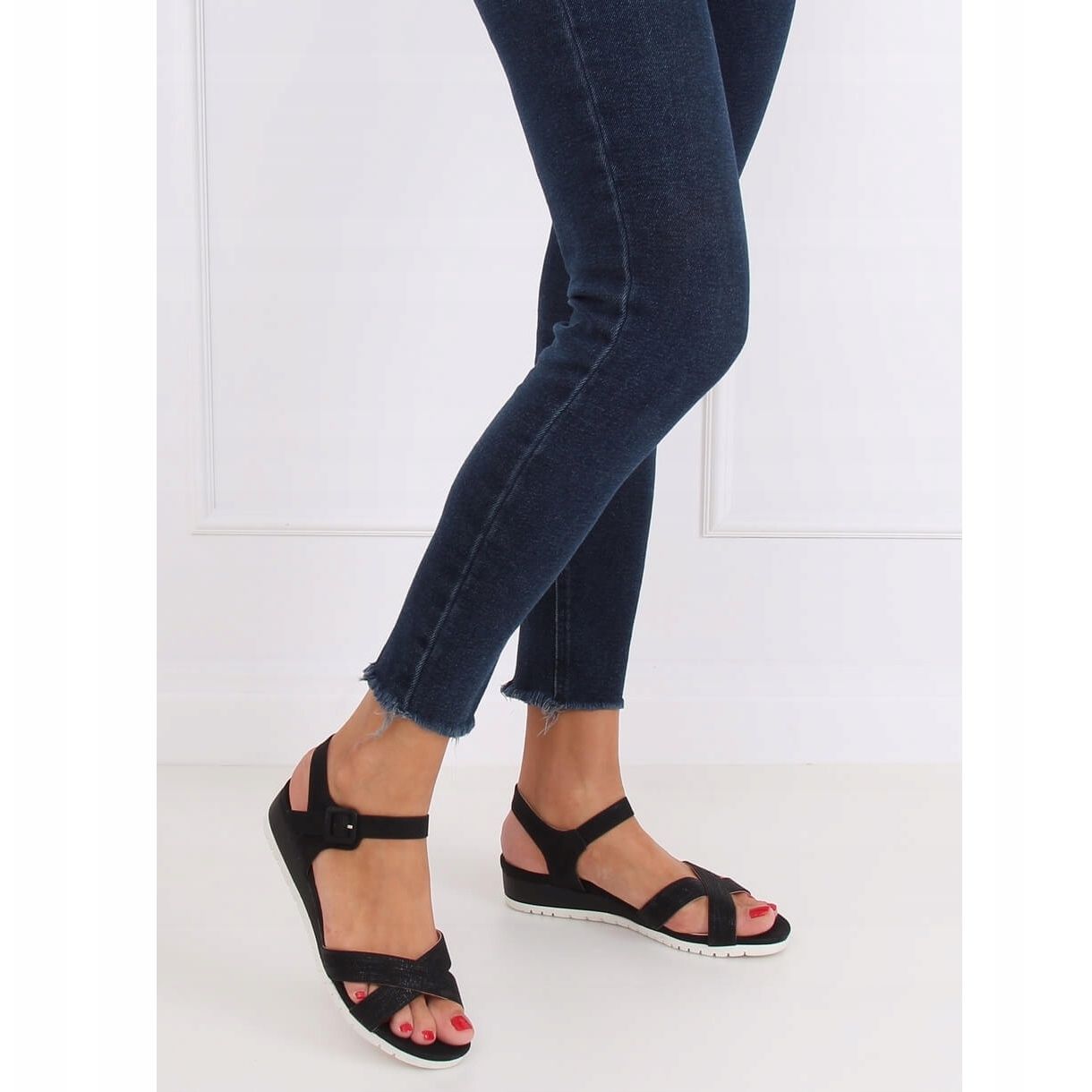 Discover the unique NS115P Black low wedge sandals, which will become an irreplaceable element of your summer wardrobe. With a heel height of just 4.5 cm, you gain comfort and stability that make these shoes ideal for everyday walks and holiday adventures.