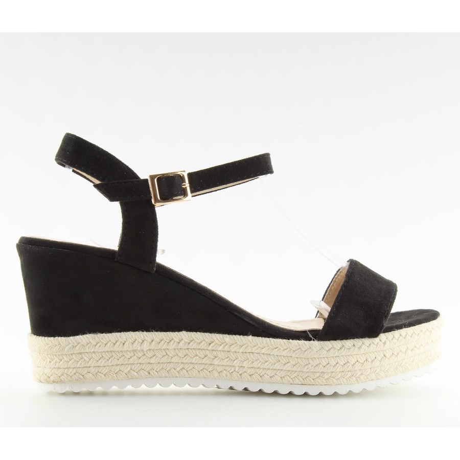 Inna marka Black sandals on a wedge heel, black espadrilles