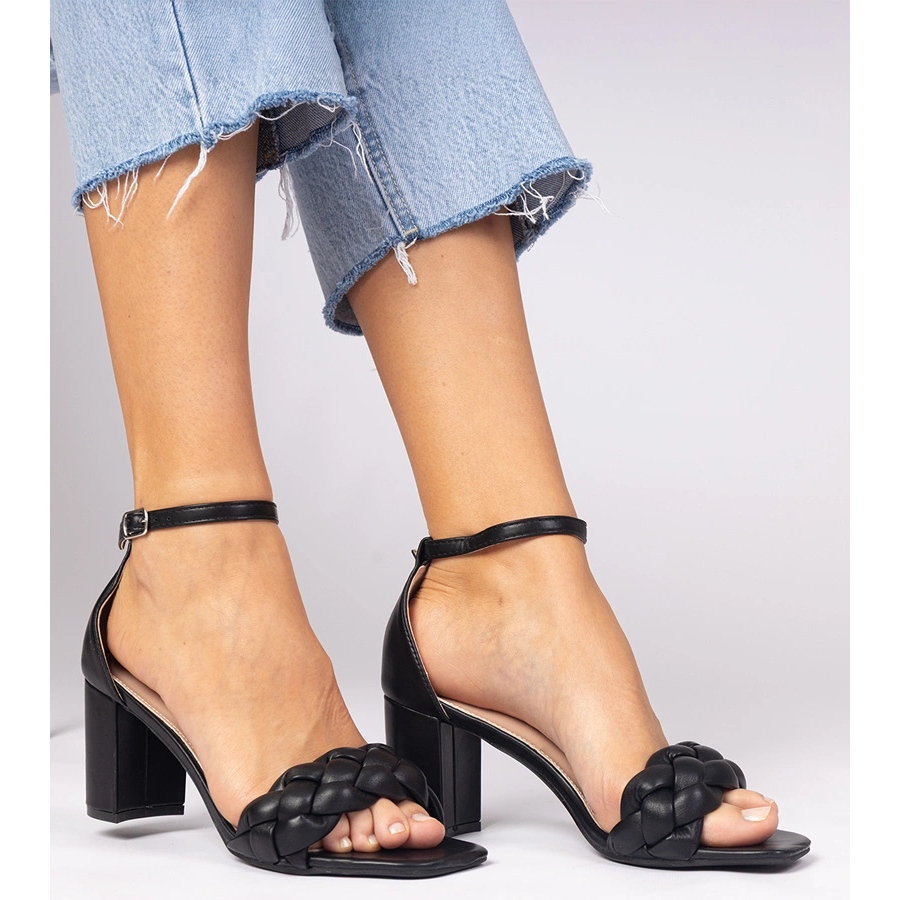 Inna marka Black sandals on the post covered