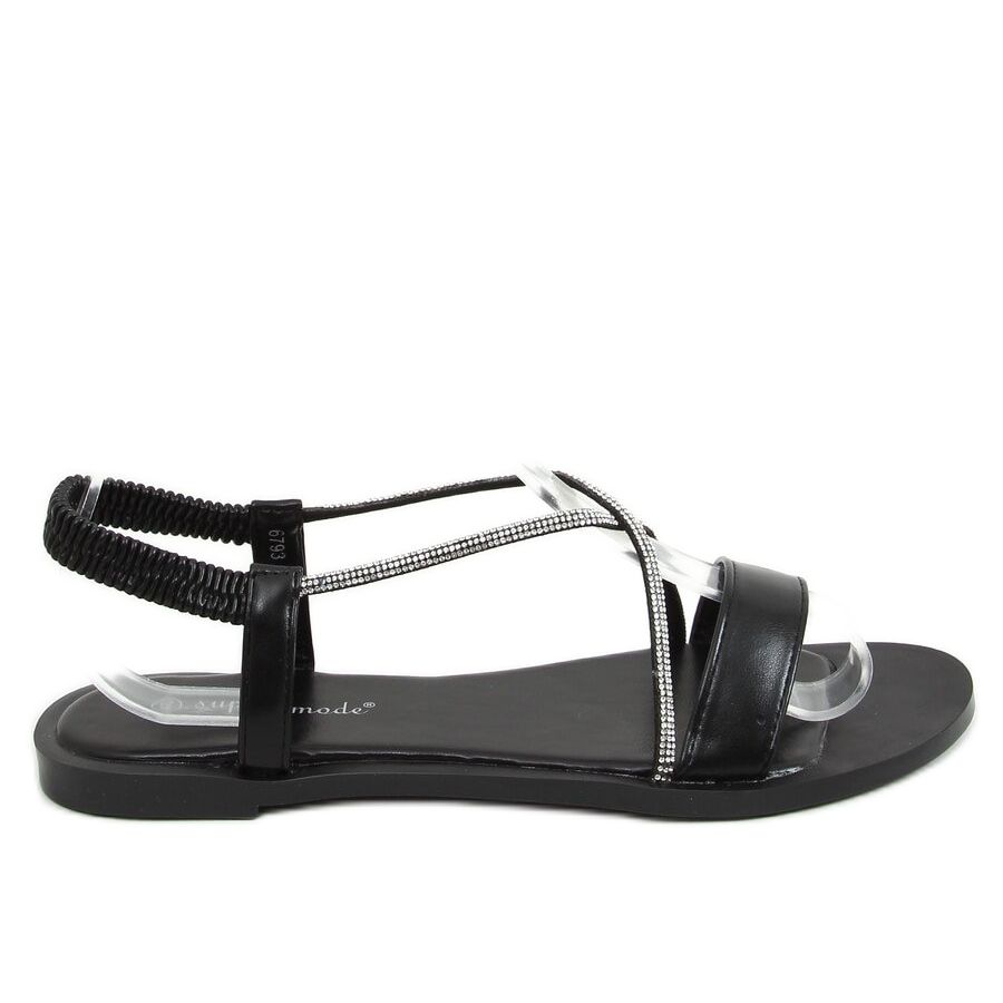 Inna marka Black sandals with cubic zirconias 6793 Black