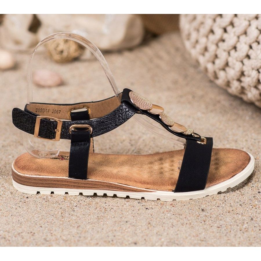 Discover elegance and comfort with the black Evento sandals with decorations, which combine fashionable design with high-quality workmanship. These extremely stylish shoes are perfect not only for everyday wear, but also for special occasions, thanks to their elegant cut and subtly decorated details.