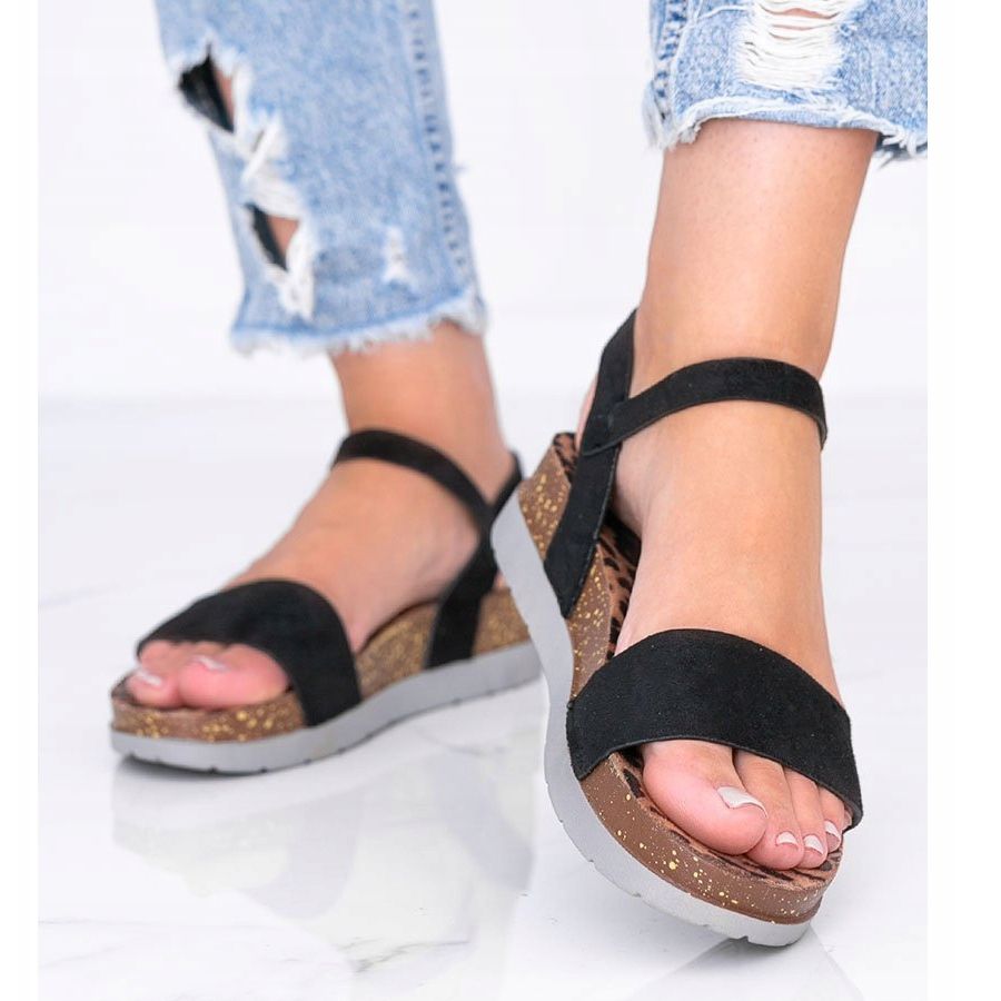 Black sandals with a leopard insole Preatty Pea are a must-have for summer, combining style, comfort and unique design. Made of ecological suede leather, they look elegant and modern, and their distinctive leopard insole adds a unique edge. A thick, soft 5 cm platform provides walking comfort, making them ideal for both holiday walks and summer parties in the city.