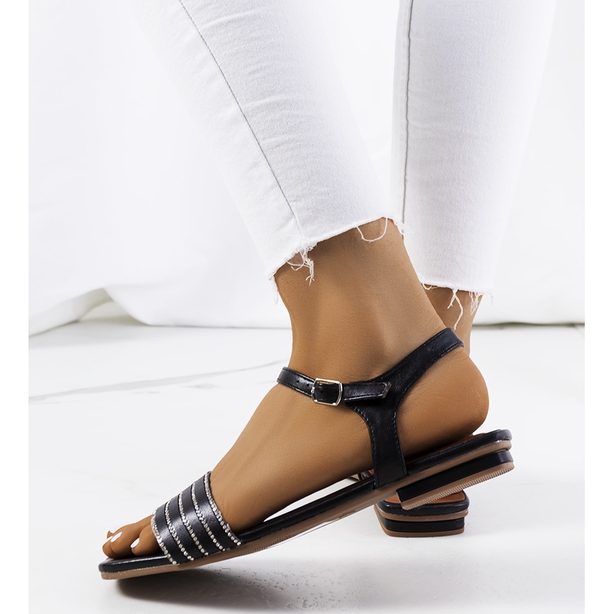 Sudbury sandals are the perfect choice for women who want to combine elegance with comfort. These black sandals, decorated with subtle zircons, add charm to any styling, making you feel beautiful and feminine. The upper is made of the highest quality ecological leather, which ensures comfort of wearing all day long.