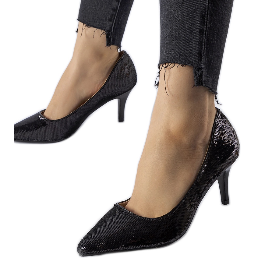 The 7 cm heel height makes the legs look slimmer and longer, and you can feel feminine and sensual. The black color and sequin finish make these pumps perfect for both special occasions and everyday meetings when you want to add a bit of shine to your look.