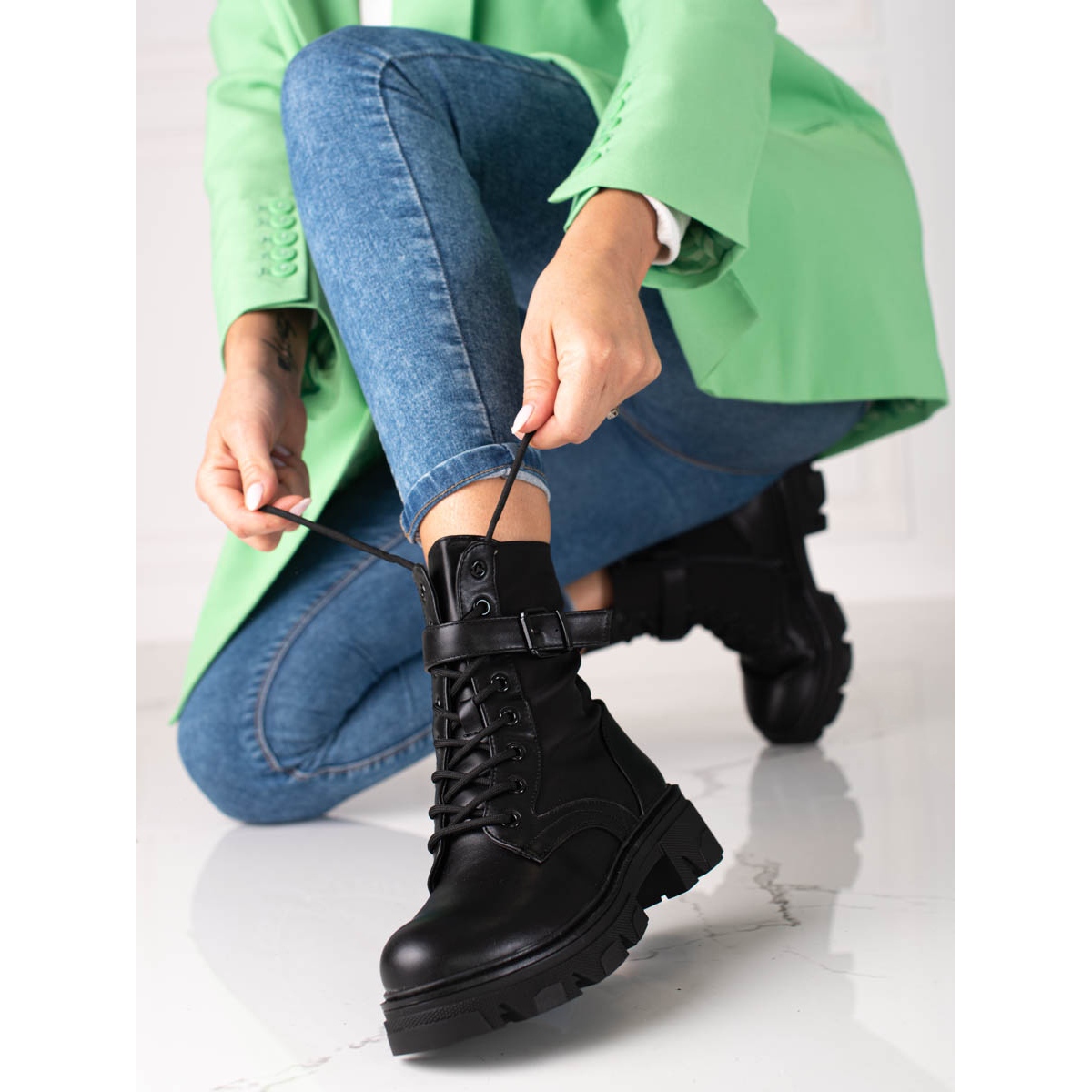 We present black Shelovet women's work boots, which are a perfect combination of style and comfort. These fashionable boots with a thick platform are a perfect choice for autumn and winter days, providing both warmth and a fashionable look.