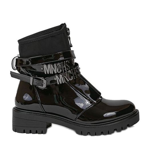 Discover extraordinary style and comfort with black shiny Mochin baggies! These unique ankle boots are the perfect choice for colder days, combining fashionable design with functionality. Decorated with an effective zipper on the front and straps with inscriptions, they attract attention and add a unique character to any styling.