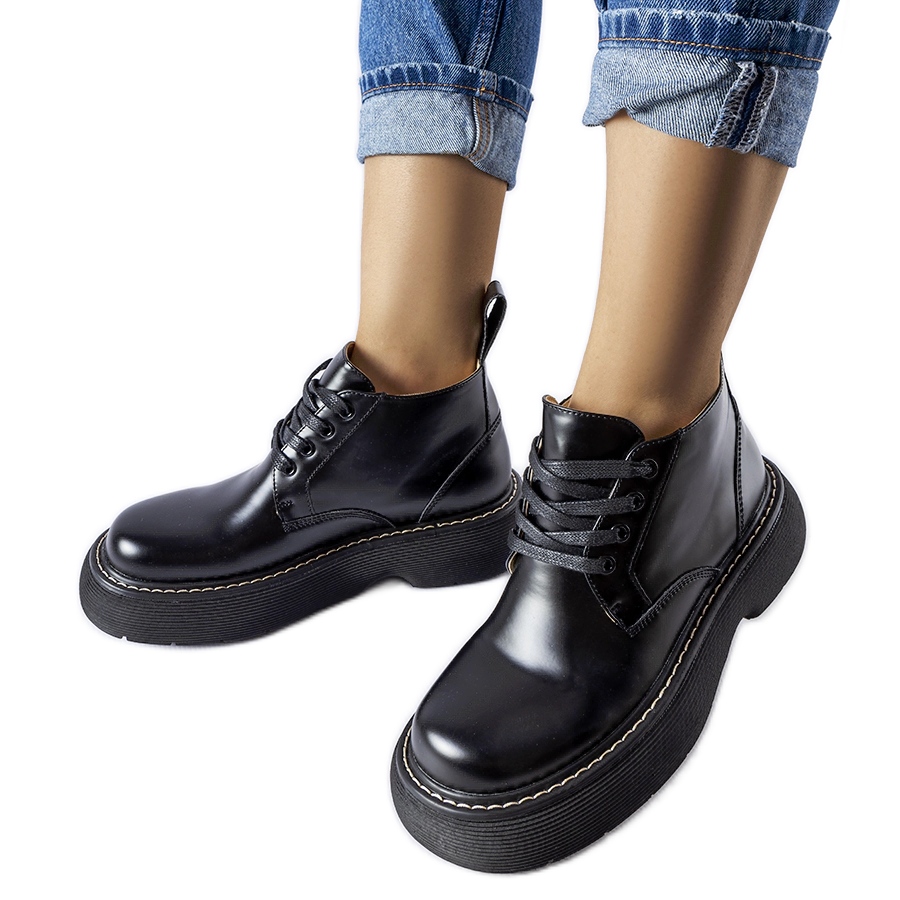 The shoes have a round toe and are laced, which allows them to fit perfectly to the foot, providing maximum comfort. Made of high-quality eco-leather and rubber, the workers are both durable and aesthetic. The black, smooth finish makes them suitable for many different combinations - from casual to more elegant.