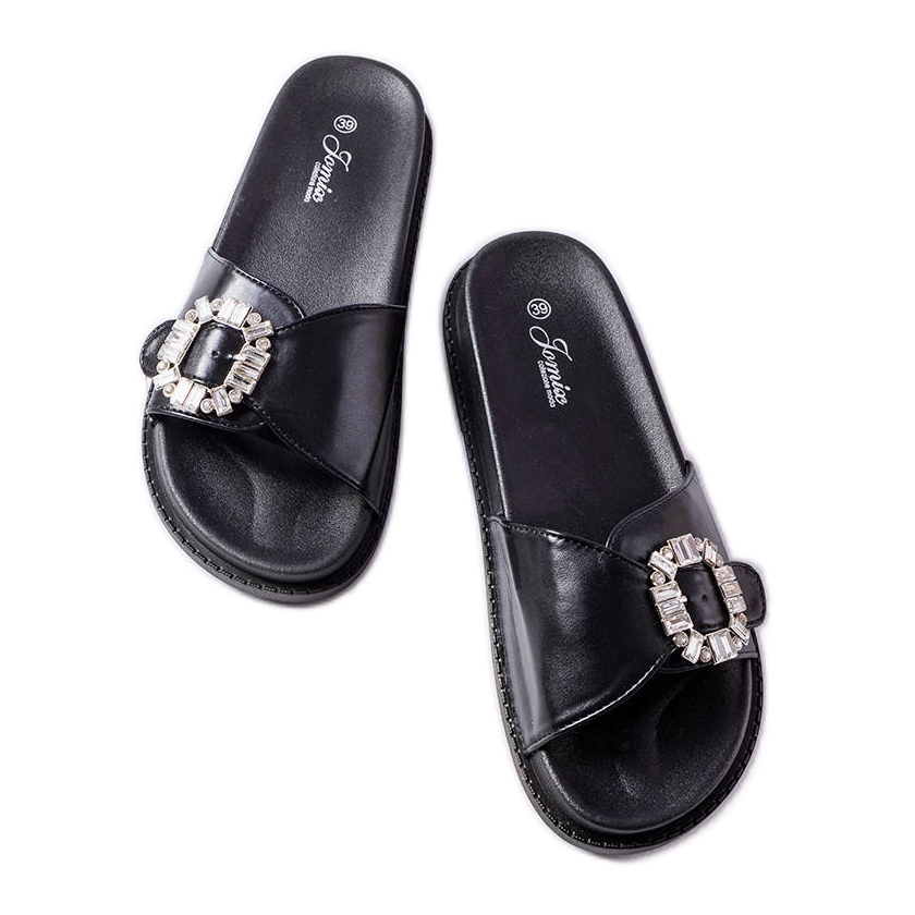 Details: Black slides decorated with Griegsvei rhinestones