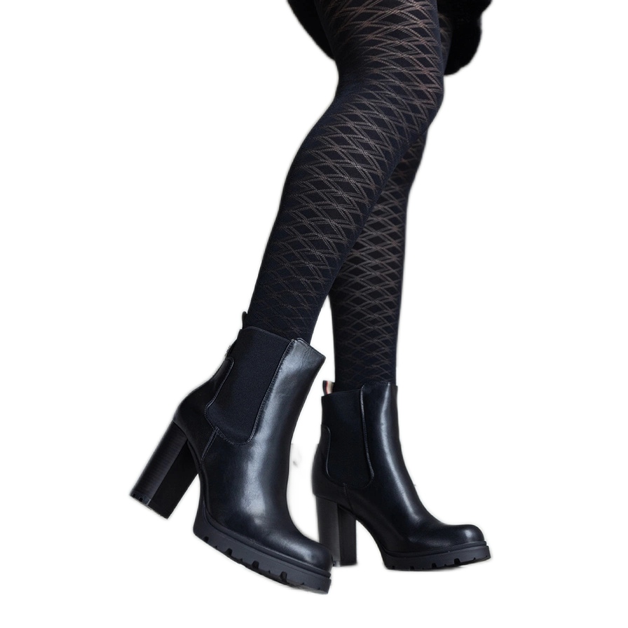 Discover the unique black slip -up boots on the Motena post, which are an ideal combination of elegance and comfort. Made of high quality eco-leather, these boots delight with their minimalist design, which will fit into every modern wardrobe. The high heel with a height of 9.5 cm not only optically lengthens the legs, but also gives the whole styling style.