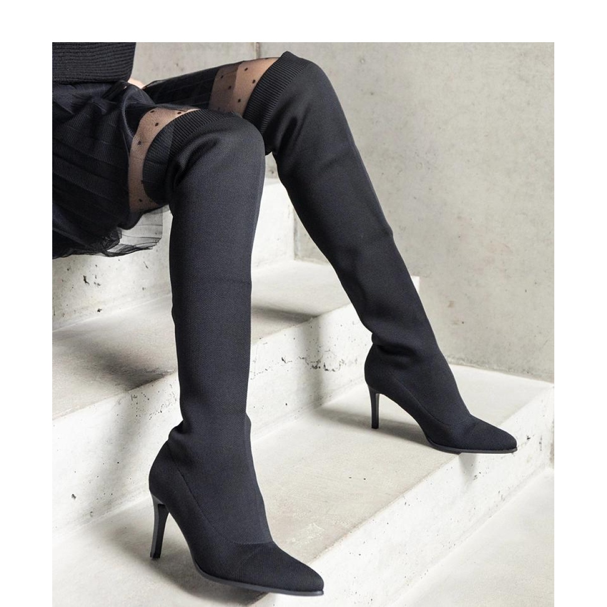 Inna marka Black slip-on high-heeled boots with an elastic upper