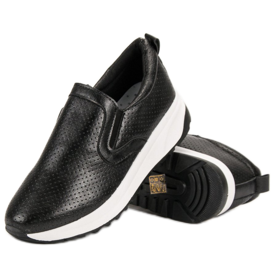 Black Shelovet slip-on half-boots are the perfect choice for women who want to combine style with comfort. Their openwork finish gives the shoes a modern character, while providing excellent air circulation, which means your feet stay fresh all day long. Made of high-quality leather-like material, these half-boots combine aesthetics with practicality.