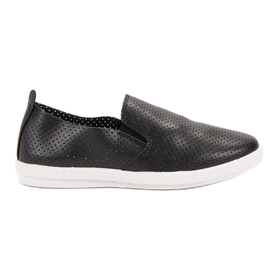 The black color makes Renda slip-ons easy to match with various styles, from casual to slightly more elegant. The openwork pattern gives them lightness and elegance, while providing adequate breathability on warmer days. Low, closed heels and a round toe guarantee comfort of wearing, and the soft sole made of synthetic materials makes every moment spent in these slip-ons comfortable.
