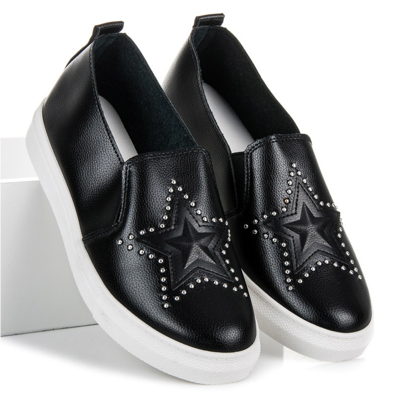 Discover unique style and comfort with black slip-ons with a star appliqué! These original shoes are the perfect combination of fashionable design and functionality that will satisfy the needs of every woman. Made of soft ecological leather, the slip-ons are lightweight and perfectly adapt to the foot, making them ideal for everyday wear.