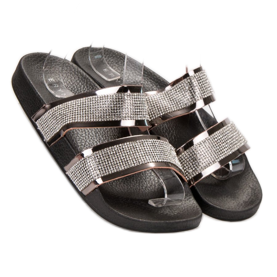 Erynn flip-flops stand out with their unconventional decoration in the form of shiny crystals, which makes them eye-catching and adds uniqueness to any styling. This model is not only fashionable, but also extremely versatile, matching many wardrobe elements.