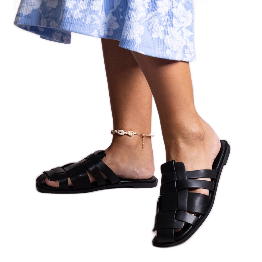 - Model: Black slippers with a braided upper 2522-1