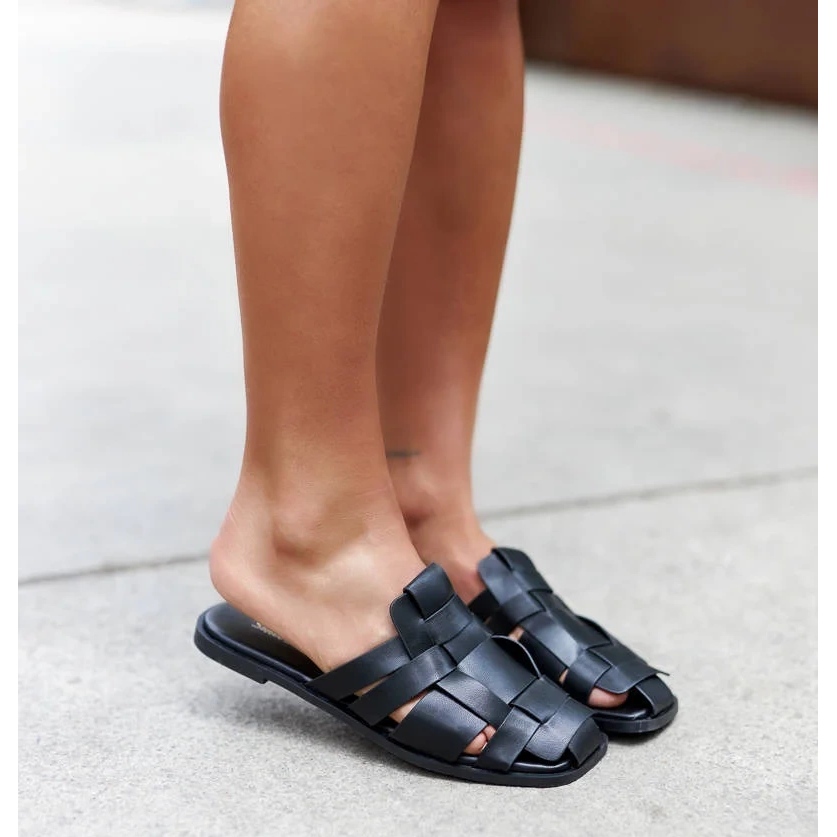 Details: Black slippers with a braided upper from Lelio