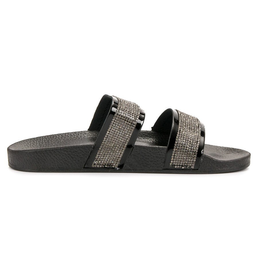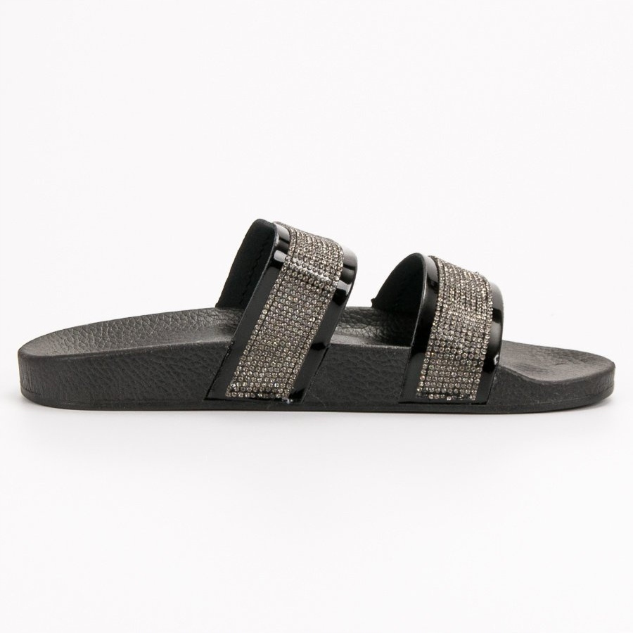 Details: Seastar Black Slippers With Crystals