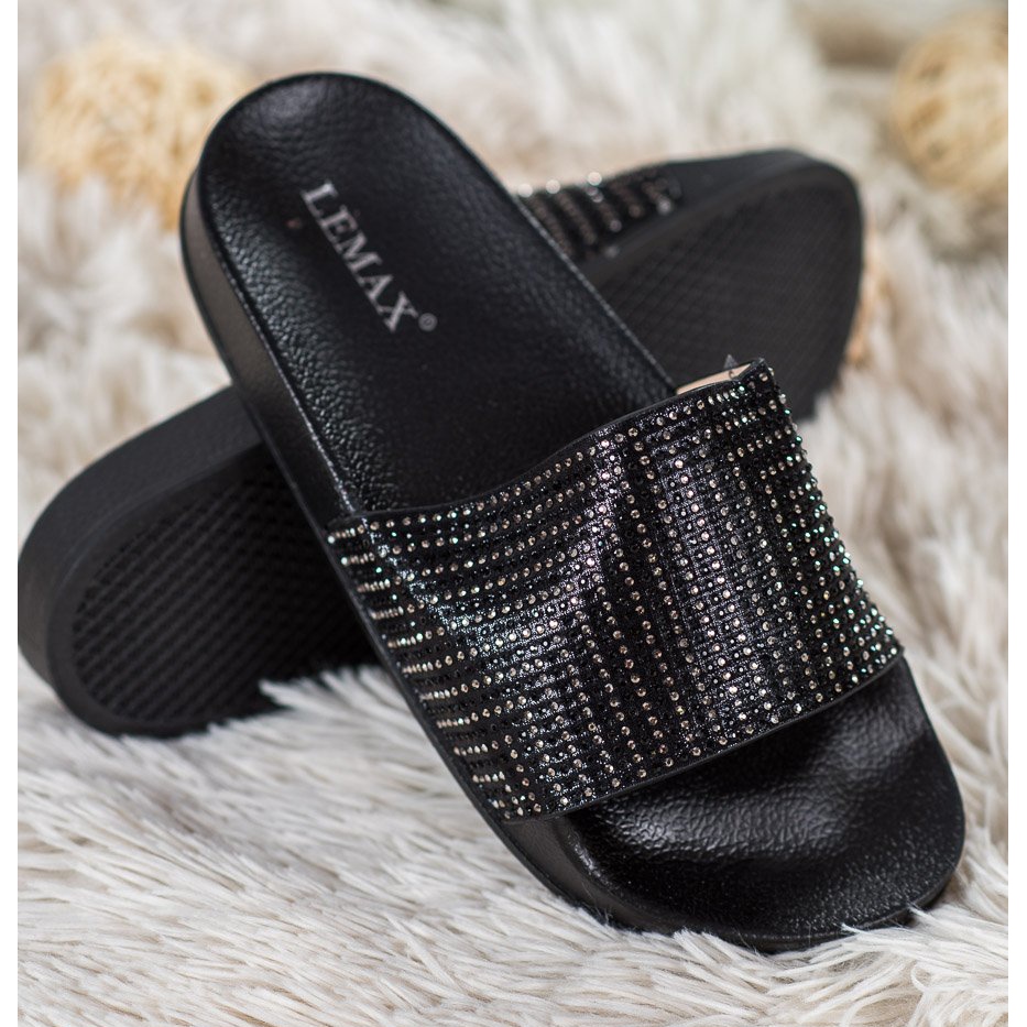 Lemax Lemax Black Slippers With Cubic Zirconia